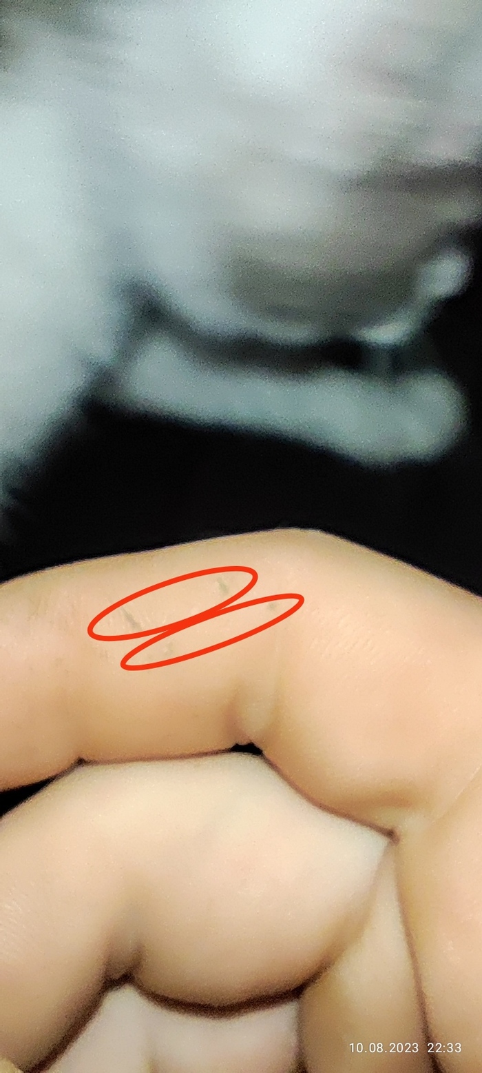 С другой стороны пальцев, что логично, находятся ещё 4 прокола..)