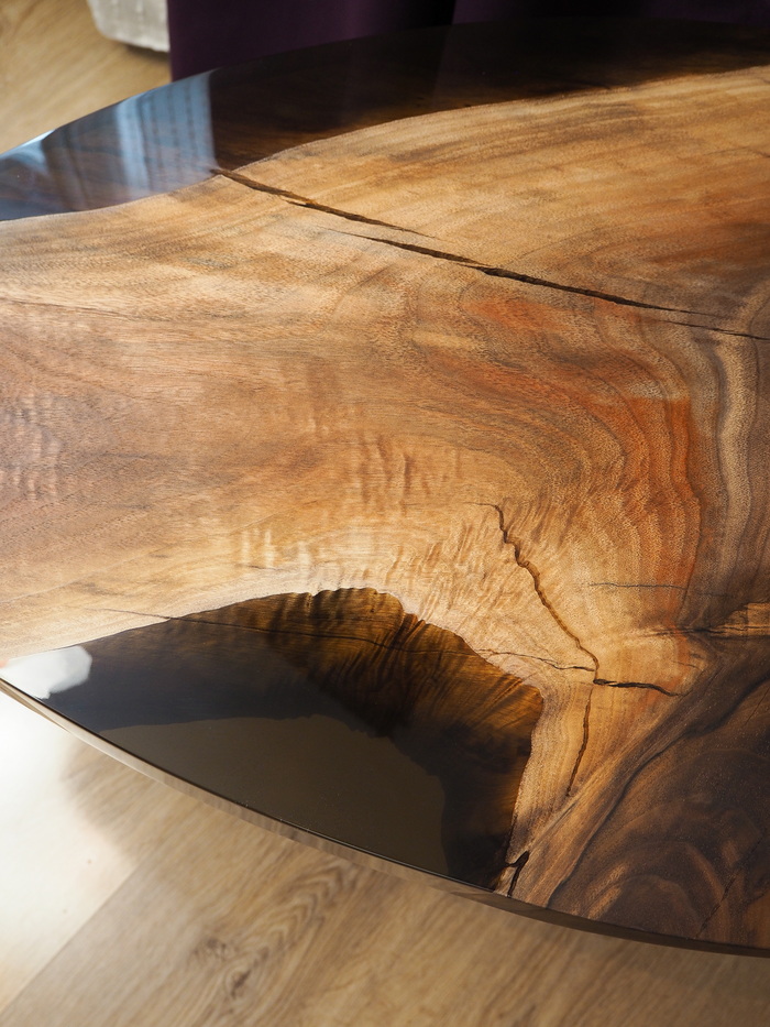 Но можете отвлечься на несколько минут и посмотреть небольшое видео с процессом изготовления стола из черного (другое название - "американский") ореха и эпоксидной смолы темного цвета. Стол, на мой взгляд, получился офигенный, оттенки дерева невероятные, особенно после покрытия маслом: