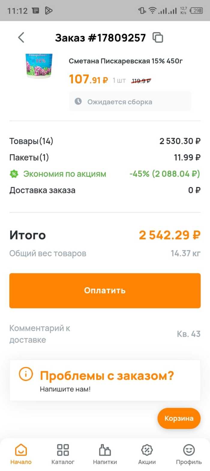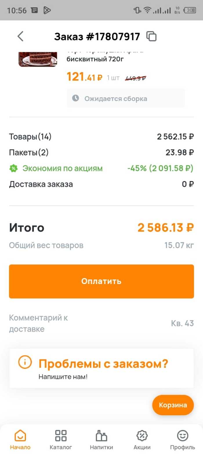 Делаю переход на ввод карты и немного офигеваю, сумма к оплате немного потолстела и уже как бы 2605 руб. я должен Дикси за заказ. Что за х...?