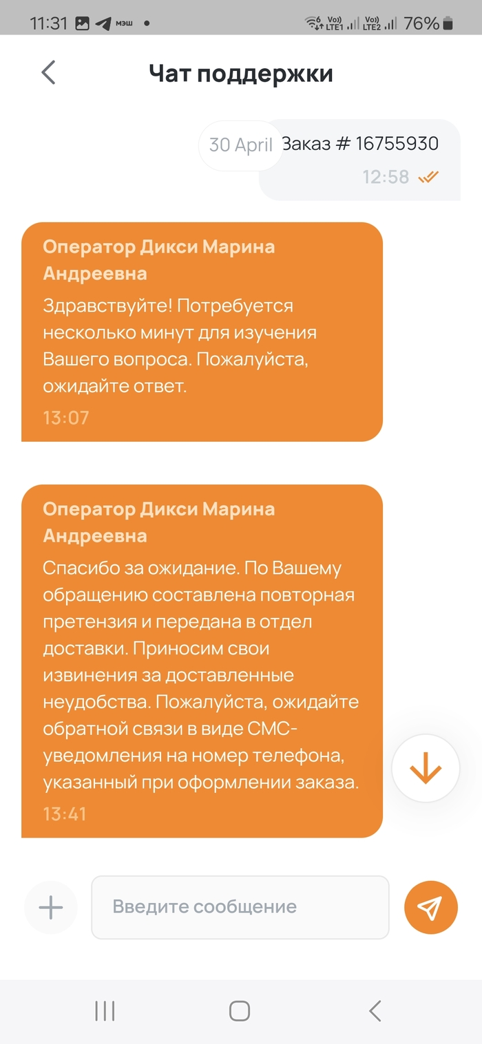 Как итог, время оплаты заказа вышло, после объяснения оператора попытался повторить заказ, добавив все снова в корзину и на этапе ввода промокода на первый заказ понял, что Дикси своей странной политикой оплаты кинул меня, промокод уже не работает, т.к. свой первый заказ в Дикси я просрал...