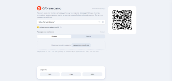 Простой и понятный русскоязычный инструмент для генерации QR-кодов. Имеет удобный интерфейс и базовые возможности кастомизации.