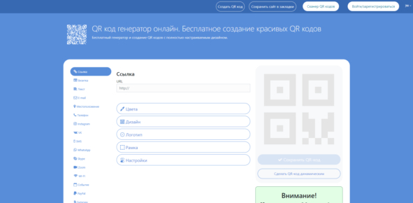 Один из самых функциональных сервисов генераторов QR-кодов на российском рынке. Имеет очень широкий функционал и немного сложный интерфейс. Работает с 2015 года, постоянно улучшается и модифицируется. На наш взгляд — лучший сервис для создания динамических кодов в РФ.