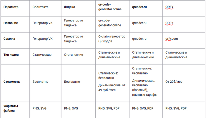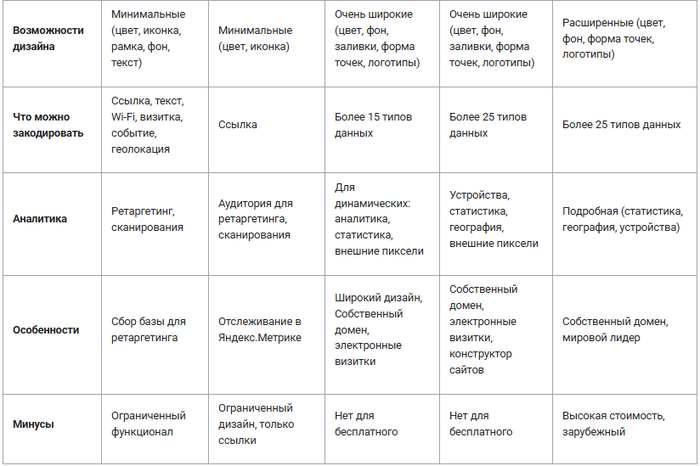 Сервис лучше выбирать исходя из задач, если нужно быстро сделать статический код без наворотов и вы используете рекламу от яндекса или вконтакте — пользуйтесь решениями этих компаний. Если нужен дизайн, но достаточно статических кодов, то выбирайте qr-code-generator.online, если нужны динамические коды, отслеживание статистики, изменение информации в уже созданных кодах, то выбирайте любой платный генератор QR кодов. Не пользуйтесь бесплатными сервисами динамических QR кодов, их работа нестабильна и обычно это коленочные решения без поддержки.