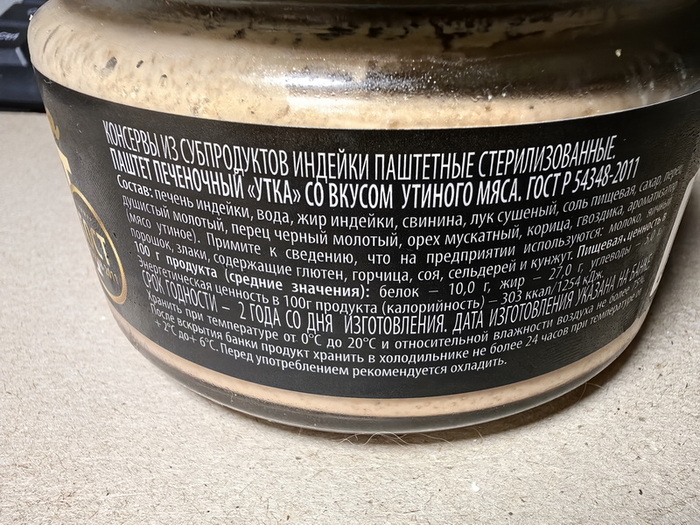 Как обычный покупатель, подумал, ага, паштет конечно вряд-ли полностью из утиной печени, как минимум с добавлением, ок, возьму пару баночек, цена вменяемая.