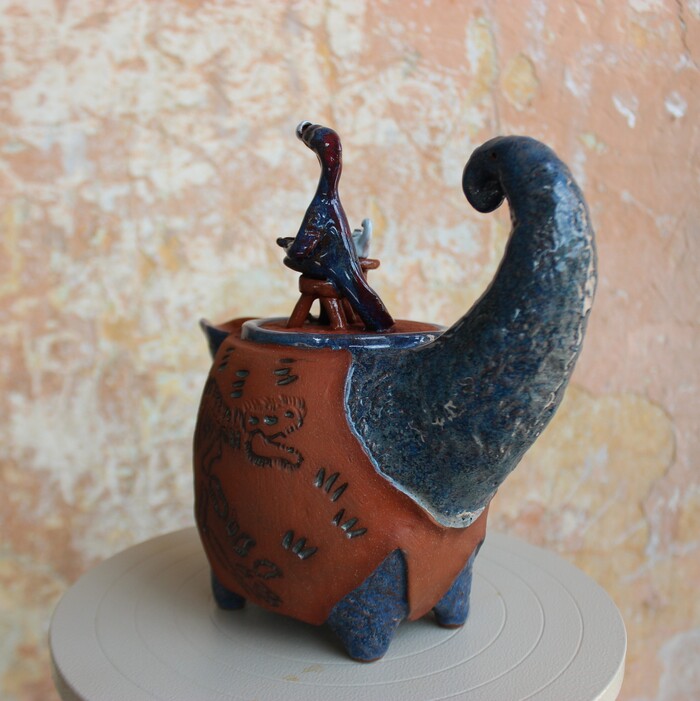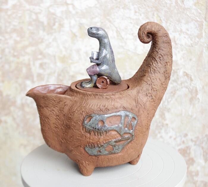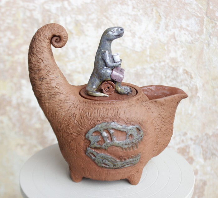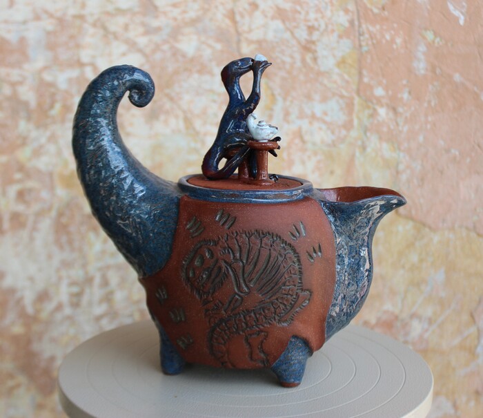 А как же перья и пух? - скажет читатель, который в курсе трендов палеонтологии последних десятилетий. Перья и пух - это безусловно, но, если ты 12-метровая туша весом в три тонны, то есть подозрение, что пух был бы непозволительным излишеством и привёл бы к неминуемому перегреву. Поэтому же и нынешние слоны не покрыты мехом - для них с их массой и так слишком жарко, аж ушами приходится махать по кд. Вот у детёнышей тарбозавров (как и других тираннозавроидов) предполагается наличие пуха. Как видите, лепка была осуществлена в соответствии с новейшими достижениями международной науки)