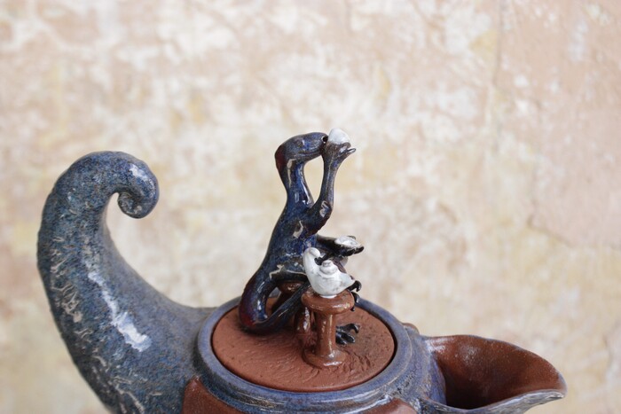 Эту полимерную глину надо запекать, чтобы она затвердела. Запекание я проводил многократно, чтобы исключить ошибки, связанные с неаккуратностью. Сделал, например, текстуру боков, а потом за эти бока схватил, и всё стёрлось. Этого и стремился избежать. В итоге оказалось, что многократное запекание - само по себе неаккуратность, в некоторых местах старозапечённые места при повторном закидывании в духовку потрескались. Пришлось латать эти места с появлением шрамов.