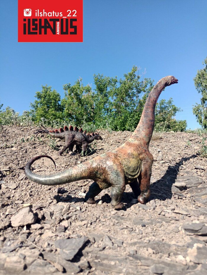 Динос ограниченно подвижный, т.к. очень плотный жёсткий материал. Но каркас есть. Ножки на шплинтах, крутятся. Тоже немного гнутся.