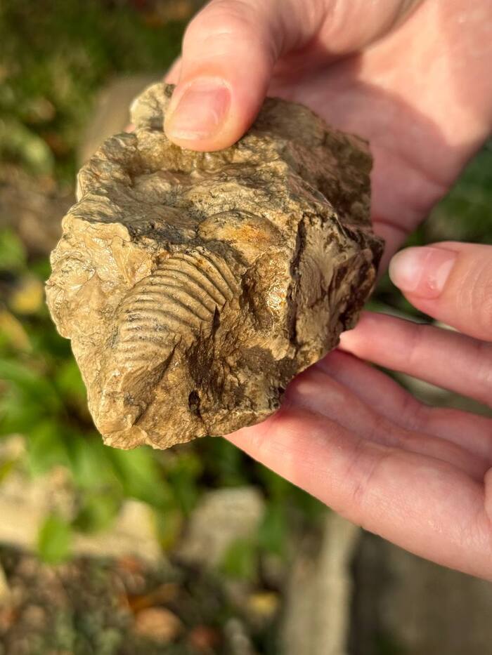 Давно мечтала сама найти такой камушек с отпечатком древнего существа, но все никак не получалось найти. И вот... Оказывается мечта была совсем близко. На даче) камушек лежал в клумбе рядом с красивой галькой привезённой с моря)