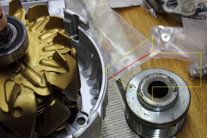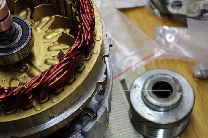 Перед установкой ротора нужно зачистить место прилегания кромки передней крышки генератора со статором по всей окружности.