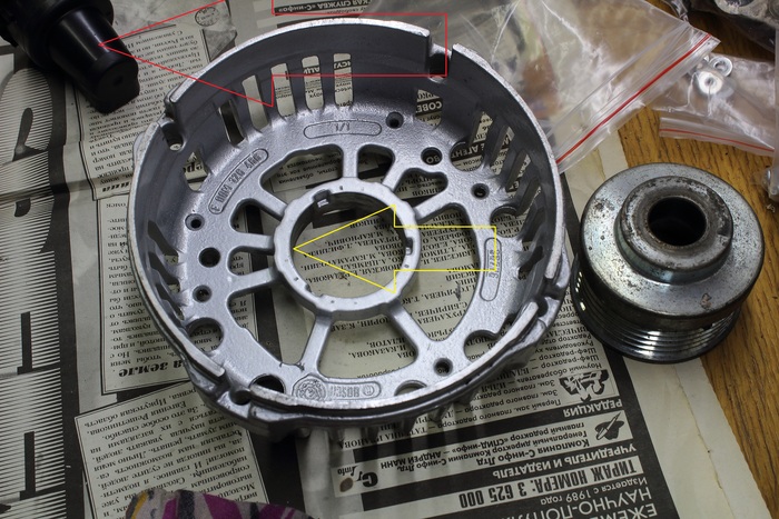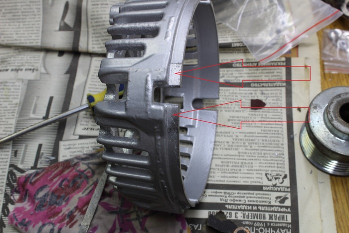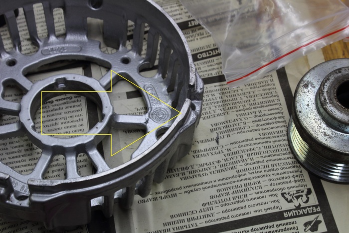 Дополнительно нужно зачищать ещё и упоры на крышке так как слой порошка после покраски немного мешает при соединении передней крышки генератора с задней(