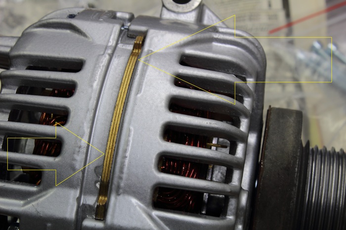Проверяем что бы обе крышки генератора плотно зажимали статор-не должно быть зазора.