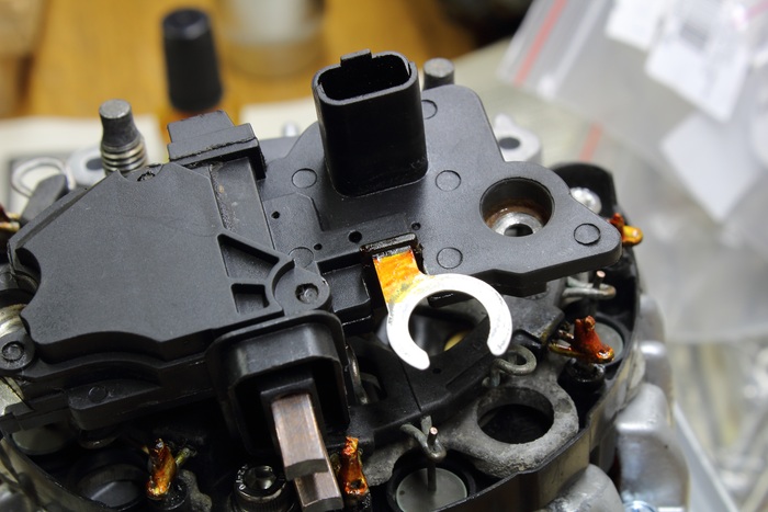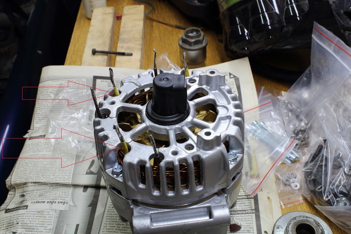 На вывода статора я иногда одеваю простую термоусадочную трубку. Хотя на диодном мосту есть направляющие каналы для выводов обмоток статора, но привычка что-то добавить осталась)