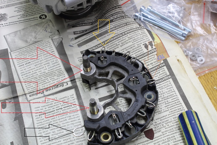 Точки контакта "массы" задней крышки с диодным мостом так же чистим.