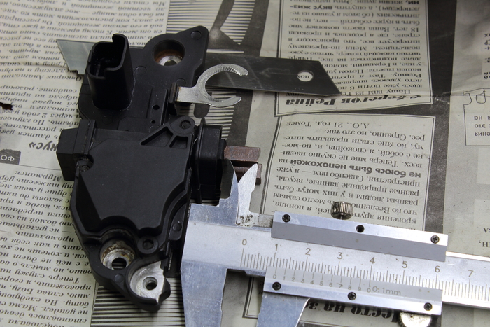 Данный вывод часто страдает в следствии чрезмерного усилия затягивания контактной гайки диодного моста. И в результате этого клемма лопается в месте захода в корпус регулятора напряжения.