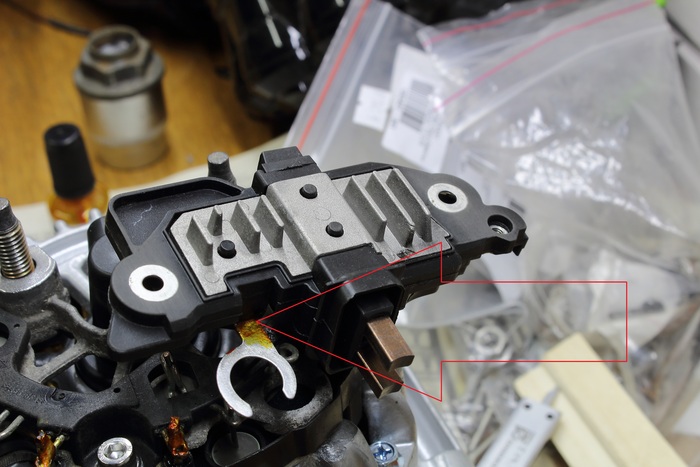 Перед сборкой генератора хотел покрывать тонкой полоской электропроводной смазки плоскости прилегания передней крышки и статора, задней крышки и статора, задней крышки и диодного моста. Но что-то засомневался в этом. Написано что для клемм аккумулятора: но что имеется в виду: наносить смазку поверх клемм или же место контакта вывода аккумулятора и клеммы? В итоге оставил так.
