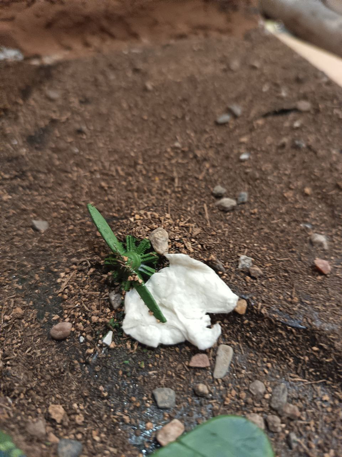 Я жду 6-8 часов, чтобы паста полностью высохла и затвердела. Теперь можно провести работу по имитации осенней покрова листвы и травы на земле. Я смешиваю мелкие камешки, листву, имитацию почвы и сухую траву в одной миске. Получается вот такая присыпка.