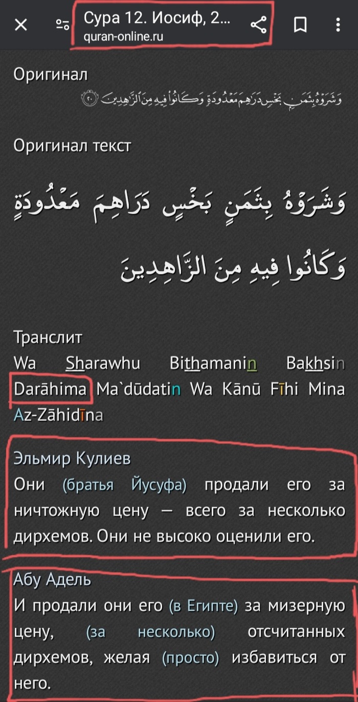 Тут (наверное) он допустил небольшие ошибки в годах и времени, но в целом это не критично. Его рассуждения все равно верны... если во времена пророка Юсуфа не было дирхемов...