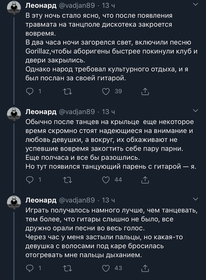 Хиты были так себе, но это и не важно, важно было, что около танцевальной площадки продавали сахарную вату. И если девочки приходили потанцевать и культурно провести время, мальчики приходили на охоту за едой, они ждали пока какая-то девочка купит себе вату и делая молненосный рывок, срывали вату с палок и уносились прочь, юрко шныряя, сквозь робкую толпу покупательниц в темень кустов, чтобы пожрать там свою добычу и продолжить охоту дальше..