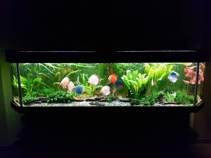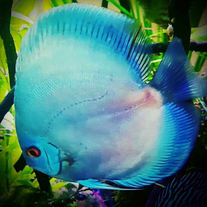Дискус - рыба стайная. Стая у них общественная, иерархическая. Как у многих приматов. Чем больше стая, тем сложнее иерархические связи, чем стая меньше, тем иерархия проще: самый сильный бьёт всех, тот кто слабее, кто на аторой ступени - всех, кроме самого сильного... и таа далее. Последнего же гоняют все. Этакий изгой.Это начинается с подростков. У них проще некуда - борьба за еду. Кто сильнее, тому больше достается он быстрее растет и становится еще сильнее... Во взрослой стае иерархия становится уже не такой строгой. Все кто мог что-то доказать, уже своё доказали и успокоились, да и половые различия и личные предпочтения тоже начинают влиять на структуру стаи...