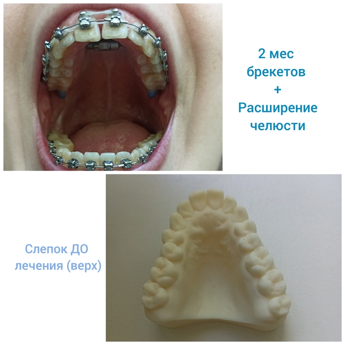 Сейчас завершается один из этапов лечения, а именно: расширение верхней челюсти и сведение зубов.