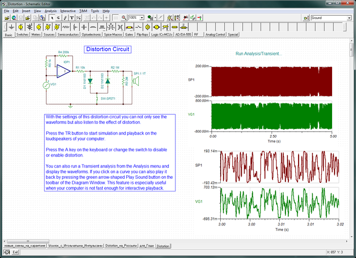 Аналоговый гитарный эффект дисторшн в цифровой системе моделирования электрических схем
