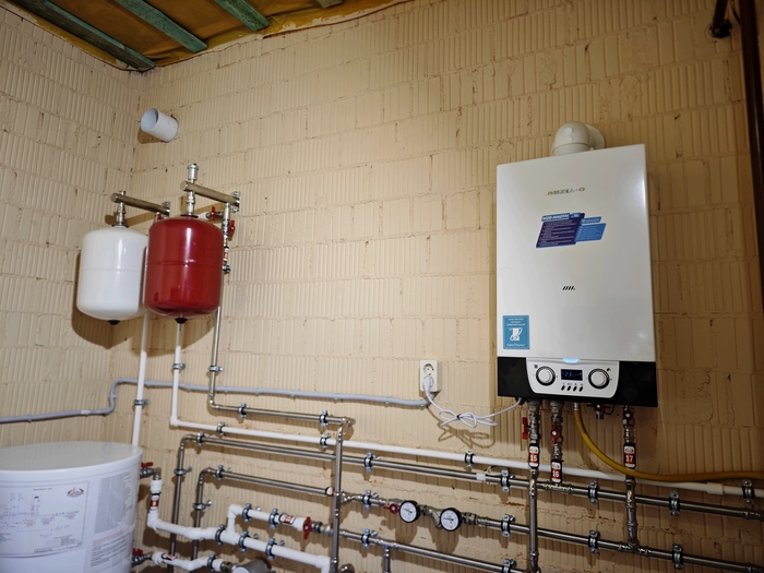 В одноэтажном доме площадью 150кв.м. выполнен монтаж котельной.