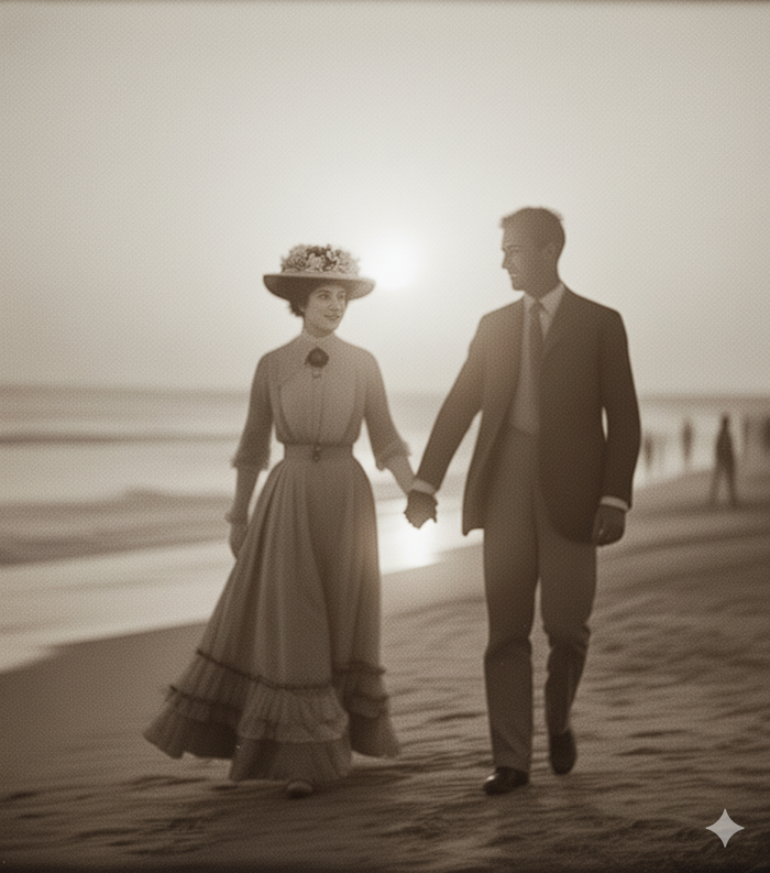 «Восстанови фотографию в тонах сепии начала 1900-х годов, которая выцвела неравномерно. Оживи теплые тона сепии к их оригинальной насыщенности, обеспечивая согласованность цвета. Смягчи мелкие складки и улучши детали вроде черт лица и фоновых объектов. Сохрани эстетику сепии»