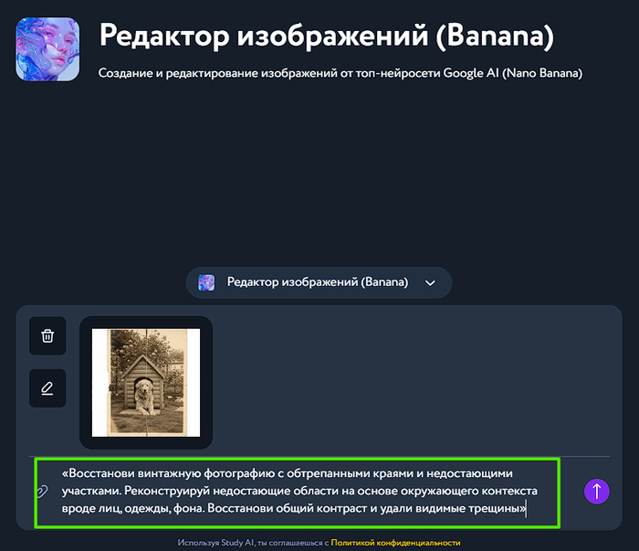 Как реставрировать фото онлайн через нейросеть в Study AI