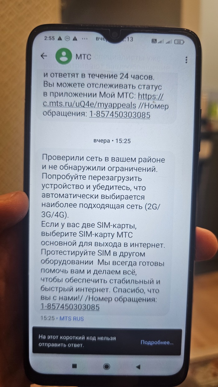 К счастью (или наоборот), у меня есть ещё один номер МТС — я недавно перешёл с Мегафона, неделя не прошла. И он работает идеально. Так что я ткнул им этим в нос: «Ребята, у вас с сетью всё нормально, не морочьте голову».