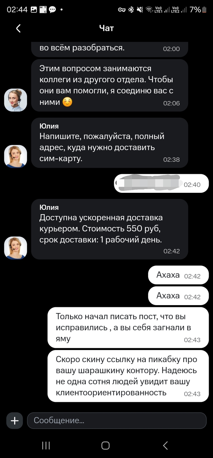 «Раз вы ничего сделать не можете — замените мне симку, привезите домой". Покажите хоть каплю клиентоориентированности!»