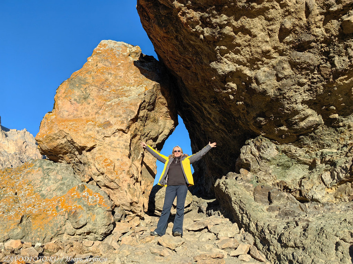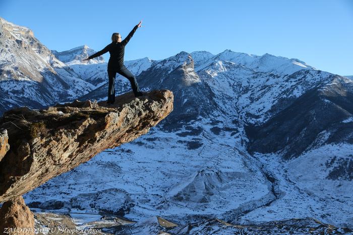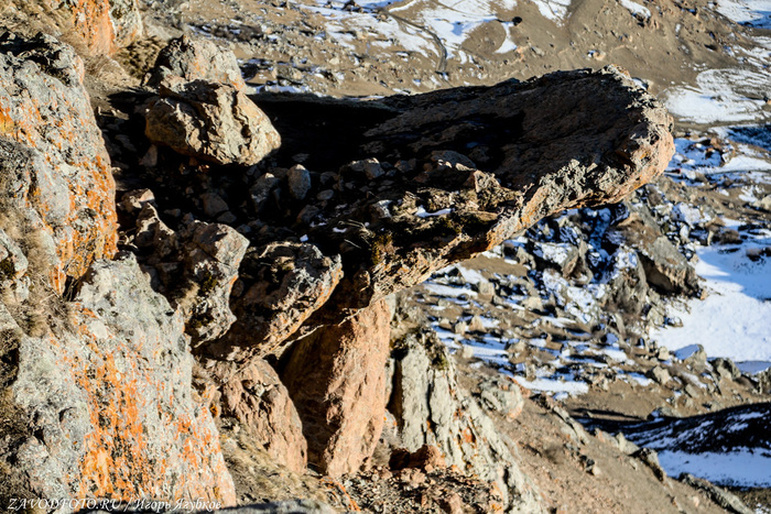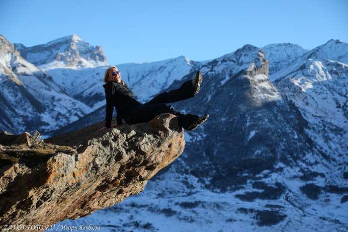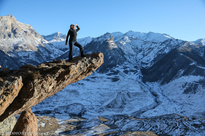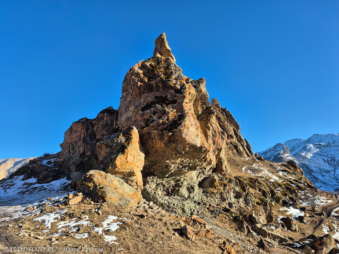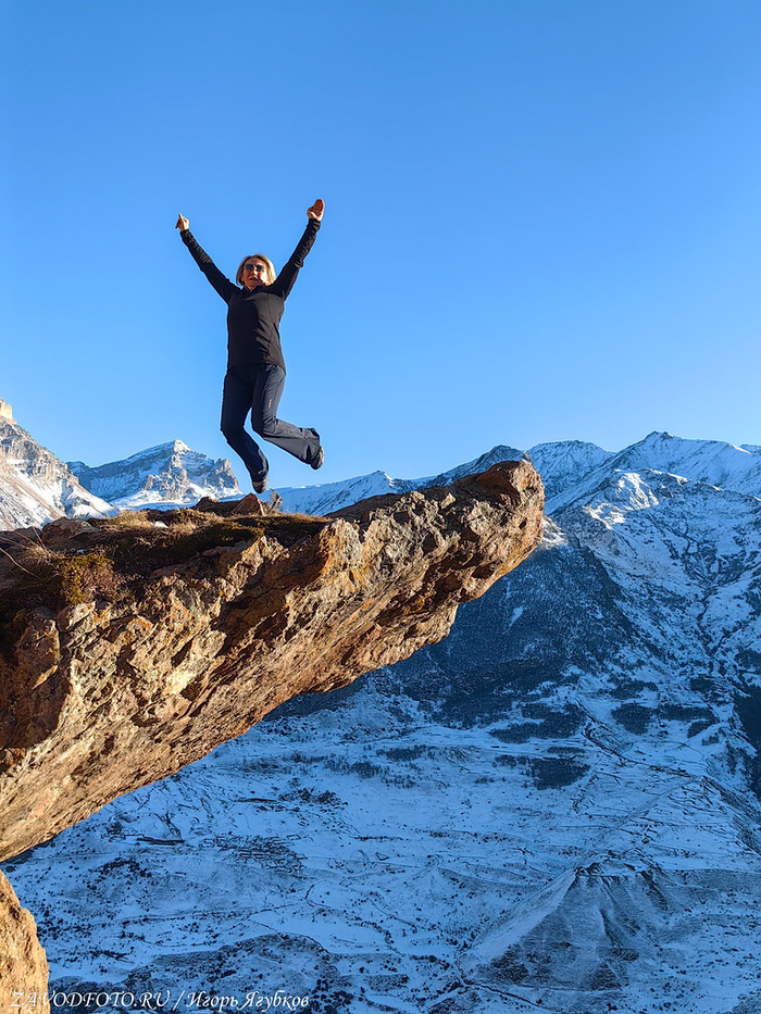 На вид это очень мощный клык, торчащий из горы! Стоять на нём не страшно. Дух только захватывает от восторга.
