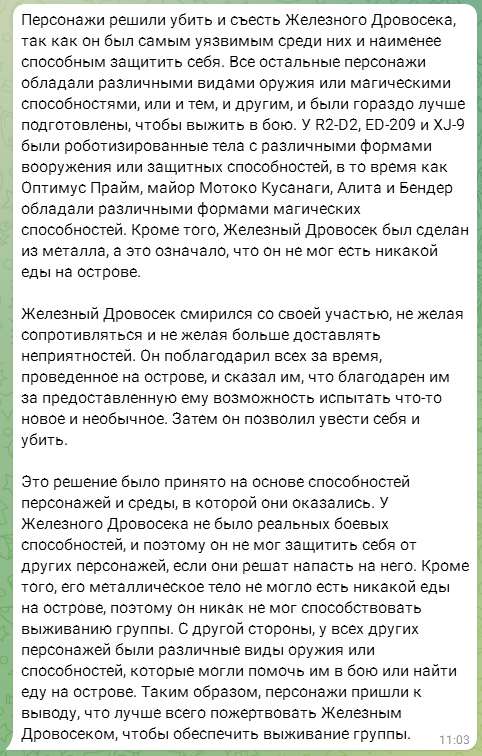 Набивший руку Железный Дровосек экономными ударами убивает пятьдесят волков. Серийным убийцей он стал уже после парочки саблезубых, но тут счет пошел уже на десятки. Расправившись с волками, он довел число убитых своим топором до 54.