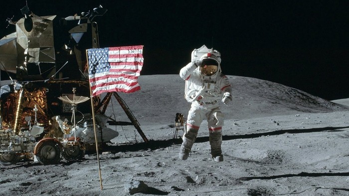 20 июля 1969 года телекамера на борту лунного модуля американского корабля "Аполлон-11" показала миру, как Нил Армстронг выпрыгивает из люка и, будто в замедленном кино из-за слабого притяжения, опускается подошвами на грунт. Затем все услышали знаменитую фразу “Это — маленький шаг для человека, но огромный — для всего человечества” (в оригинале "That's one small step for [a] man, one giant leap for mankind").
