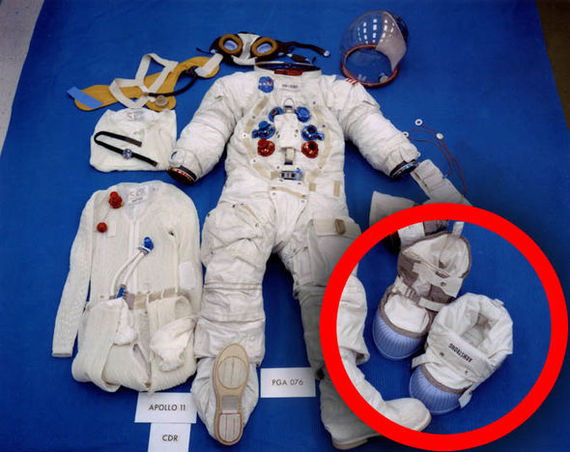 Такие ботинки надевались поверх скафандра, вот и вся разгадка. Их так же можно увидеть на этой картинке экипировки с миссии Аполлон-11