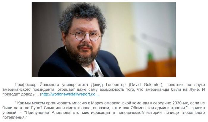 «Портал WikiLeaks, в последние годы попадавший в выпуски новостей в основном в связи с арестом Джулиана Ассанжа, выдачи которого требуют Соединённые Штаты, снова громко заявил о себе. Эксклюзивные секретные материалы создали WikiLeaks славу источника неопровержимой сенсационной информации. На этот раз речь идёт о документах, которые должны подтвердить давние слухи, что правительство Соединённых Штатов Америки и НАСА скрывали правду о программе "Аполлон" и о высадках на Луну. <…> Документы якобы были переданы Ассанжу высокопоставленным сотрудником НАСА, который устал терпеть ложь, которой Соединённые Штаты полвека кормили человечество. Видео, облетевшее всю планету, на самом деле снимали на Земле. Роль Луны сыграла пустыня в штате Невада. И якобы часть съёмок была сделана в павильоне студии, где создавал свою "Космическую одиссею" Стэнли Кубрик. Но знали об этом всего несколько человек. И в июле 1969-го это якобы документальное кино посмотрели более полумиллиарда человек».