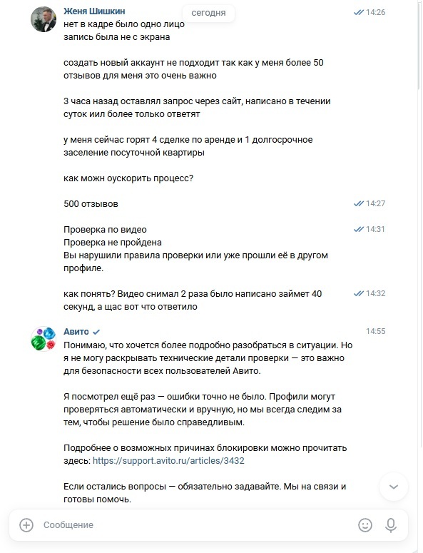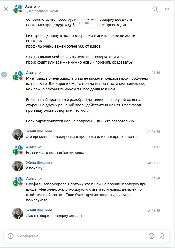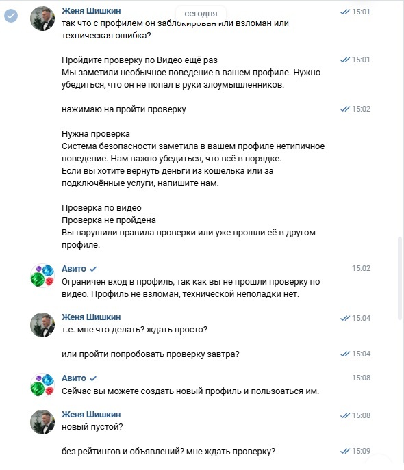 А в этом аккаунте — вся моя деятельность: и объявления, и история переписок с клиентами, и сделки, и подтвержденные данные. По сути, отобрали инструмент для работы и личные данные, просто потому что «система сбоит».