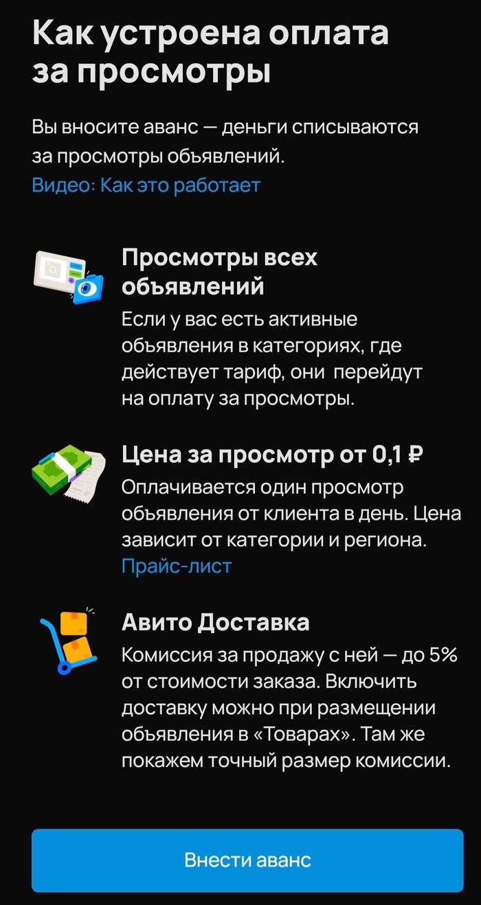Я разместила более 30 объявлений в разных категориях, два из них оплатила на месяц вперёд. Когда начала размещать третье платное объявление, обратила внимание на альтернативу - тариф с оплатой за просмотры.