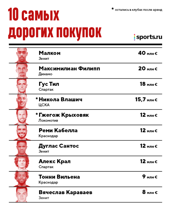 В РПЛ завершилось трансферное окно и вот несколько фактов: