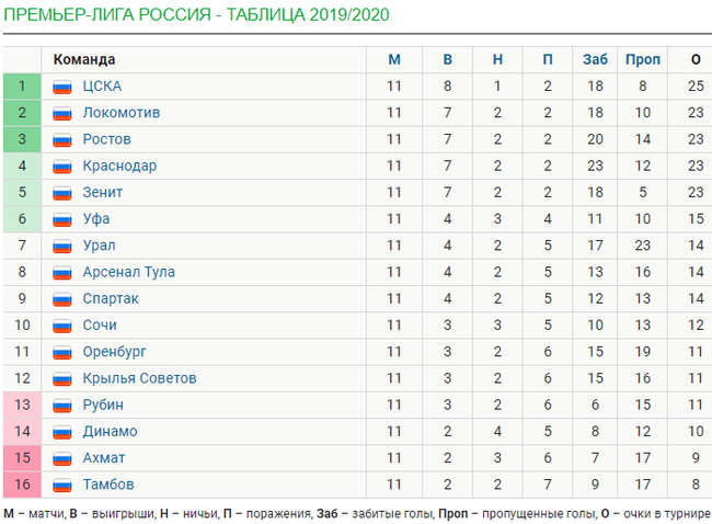 - Турнирная таблица после 11 тура: