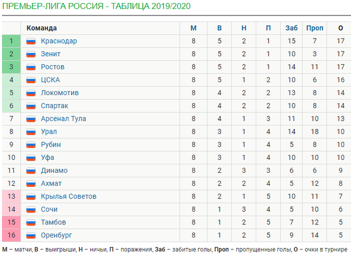 - Турнирная таблица после 8 тура: