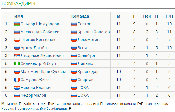 - Лучшие бомбардиры: