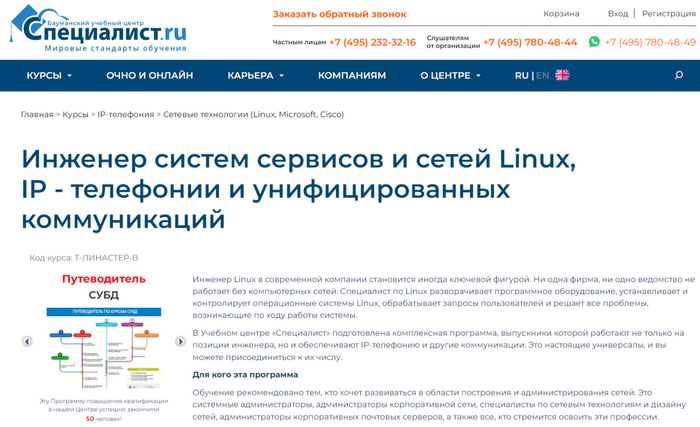 Инженер систем сервисов и сетей Linux, IP - телефонии и унифицированных коммуникаций от Специалист.ру – лучший курс для прокачки навыков в сфере администрирования сетей.