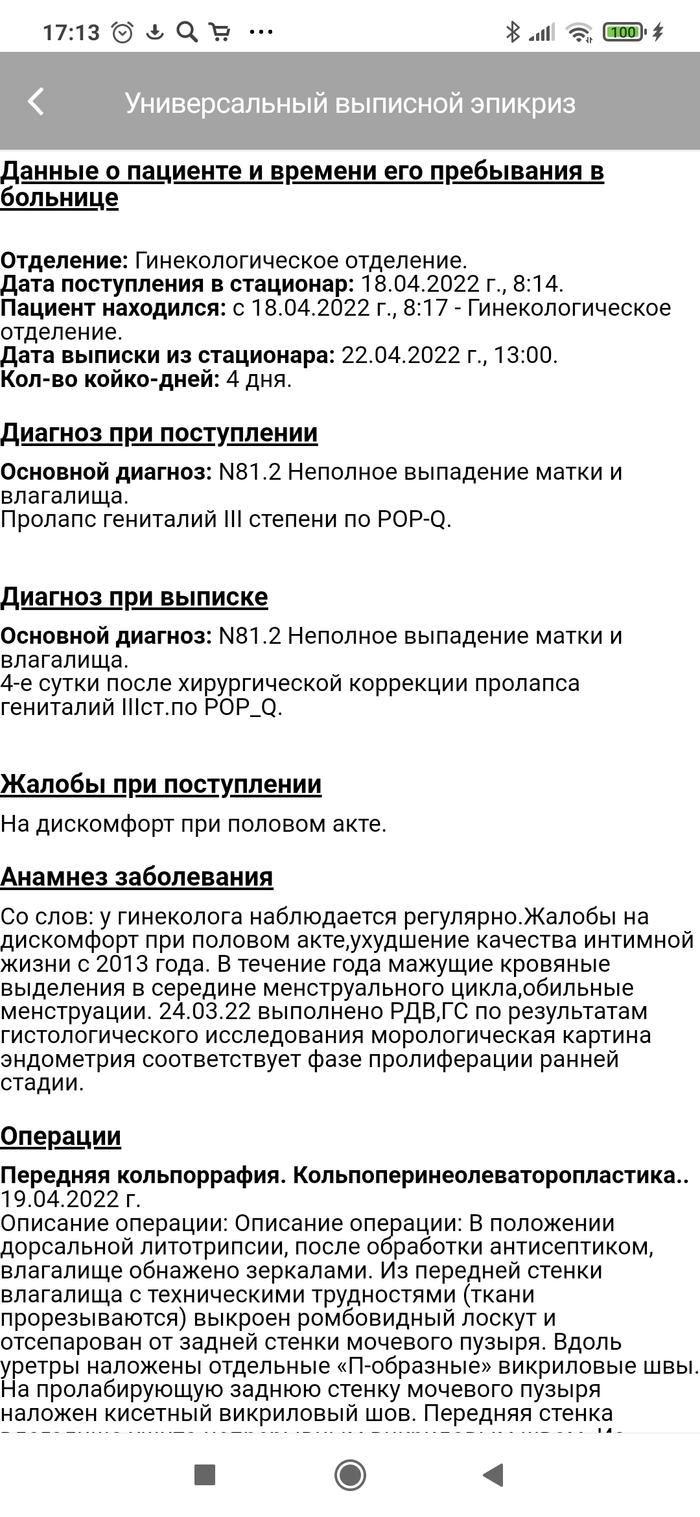 Секс после родов был невероятно болезненый, но всё геникологи уверяли, что это норма и спустя время активной половой жизни всё наладится, и да, спустя время боль поутихла, а чуствительность пропала. В 2014 я развожусь с мужем и на целый год остаюсь без интима, соответственно на свою проблему забиваю, в 2015 появляется молодой человек и после первого полового акта и последующих я понимаю, что не чуствую его, думаю как и он меня. Спустя время мы растаемся и я всё ещё не придаю значение своей проблеме, мало ли не сошлись параметрами))) проходит ещё два года и я встречаю нынешнего мужа и после первого интима с ним я опять ничего не чуствую и последующих тоже, только спустя время появляется переодически чуствительность. Т. е. Это мне надо капец как возбудится, чтобы у меня начали сокращается мышцы, быстрый секс становится неинтересным( в 2020 году я рожаю вторую дочь. Снова порваться было капец как страшно, но мой гинеколог на отрез отказался меня кесорить и как итог внешних разрывов нет, но зато всё внутри в клочья. И тут при зашивание была фраза, о том, что у меня теперь там карман. Как оказалось карман это цистоцеле (по простому это когда стенки мочевого пузыря западают во влагалище, как раз из-за этого не вся моча выходит во время туалета, а может вытечь при вставании или других действиях). В этот раз швы заживали намного быстрее и спустя месяц я уже спокойно сидела, а вот с интимом начались проблемы моя чуствительность с каждым днём махала мне ручкой, а так же начались небольшие проблемы с туалетом( пару капель после вставания с туалета) решила я менять свою жизнь и стала искать информацию в интернете, там рекомендовали разные упражнения кегеля, специальные тренажёры, гиалуронку и курсы. Я решила начать с курсов на этих курсах я подчерпнула много полезной информации, так же там рекламировали специальные тренажёры elise и kgoal, я купила оба, заказав их в интернете (если что, то так намного дешевле). Elise я в итоге вернула назад, а вот по поводу kgoal пока в раздумьях (если нужно, то расскажу подробнее о них). Тренажёры мне особо не помогли, мысли были по поводу гиалуронки и решила перед процедурой проконсультироваться у своего гинеколога, на приёме я узнала, что у меня зияющая щель (это не ругательство, а как оказалось медецинский термин, это когда влагалище постоянно раскрытое, сомкнуты ноги или раздвинуты оно раскрытое, проще говоря дырень) и опущение 3 степени, а также цистоцеле и у меня паказание на операцию. На мои вопросы где это можно сделать и сколько стоит, врач сказал, что можно сделать по ОМС у них в роддоме, только нужно придти на осмотр оперирующего хирурга, пройти терапевта, уролога (так как страдаю циститами) флюрографию, ЭКГ и сдать анализы. Вышла я от врача разбитой, я не думала, что всё настолько плохо и что у меня оказывается дырень, но с другой стороны доктор сказал, что возможно операция поможет с циститом и уж точно с интимом, а это вселяло надежду. Пока ехалала до дому искала информацию в интернете, но её было очень мало и она была старая или рекламная, а так же было много форумов с хвалебными одами доктору Бакехрханову (он платный хирург, такая операция у него в апреле обошлась бы мне порядка 250т) хороший ли он хирург или это реклама, не знаю, но думаю в дальнейшем сходить к нему на консультацию, т. к. Проблемы некоторые остались (о них в конце). Сомнен