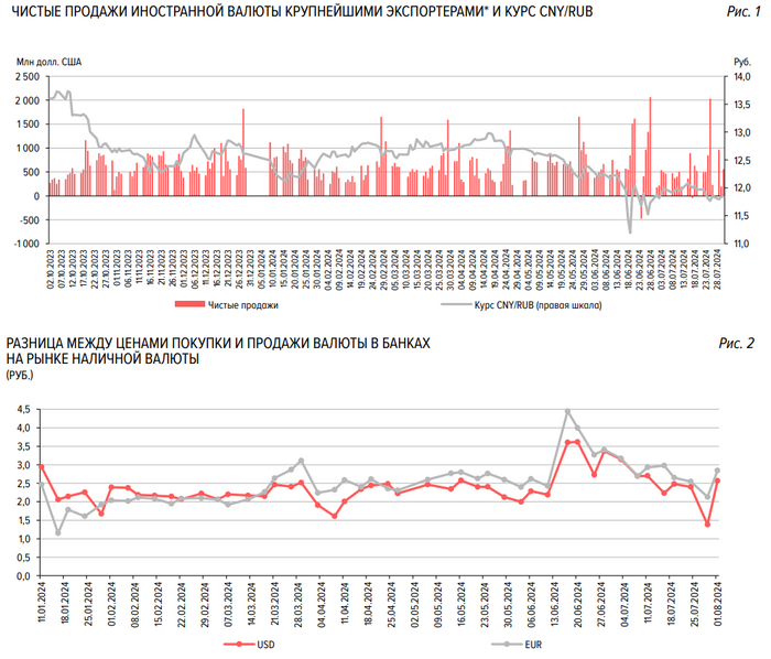 Чистые продажи валюты крупнейшими экспортёрами составили 12 млрд $, снизившись на 15% относительно предыдущего месяца. Тут есть эффект высокой базы: на июнь пришлись крупные выплаты дивидендов.