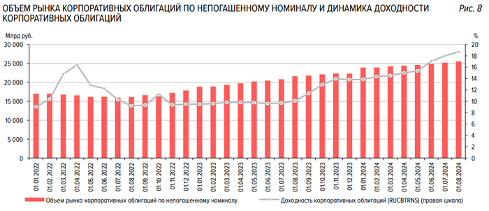 Рынок корпоративных облигаций растёт. Как и их доходности. Индикативная доходность достигла 18,7%.
