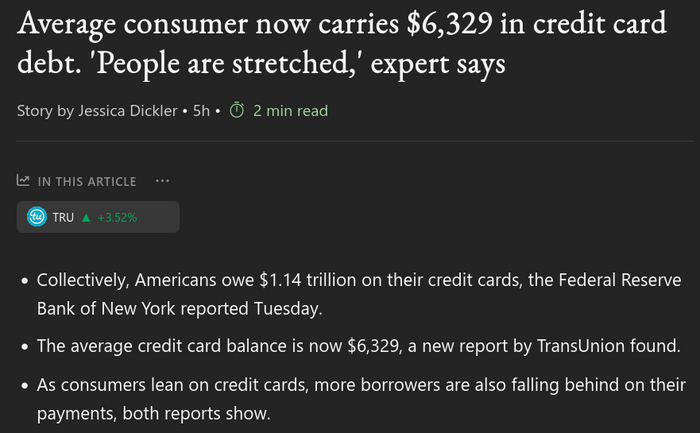 Средняя задолженность у американца по кредитной карте - 6 329$