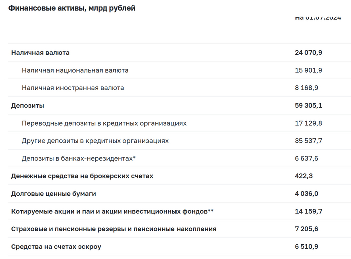 По последним данным Банка России, у наших граждан лежит денег на 115 710,5 млрд ₽. Из них 51% размещён на банковских депозитах. 21% в наличной форме. А 16% на долговом и фондовом рынках.