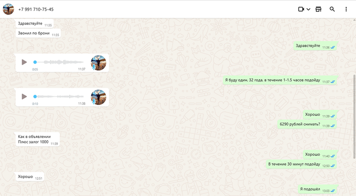 Итого на 12.11.2025 в WhatsApp все трое молчат по поводу возврата залога и предоплаты.
