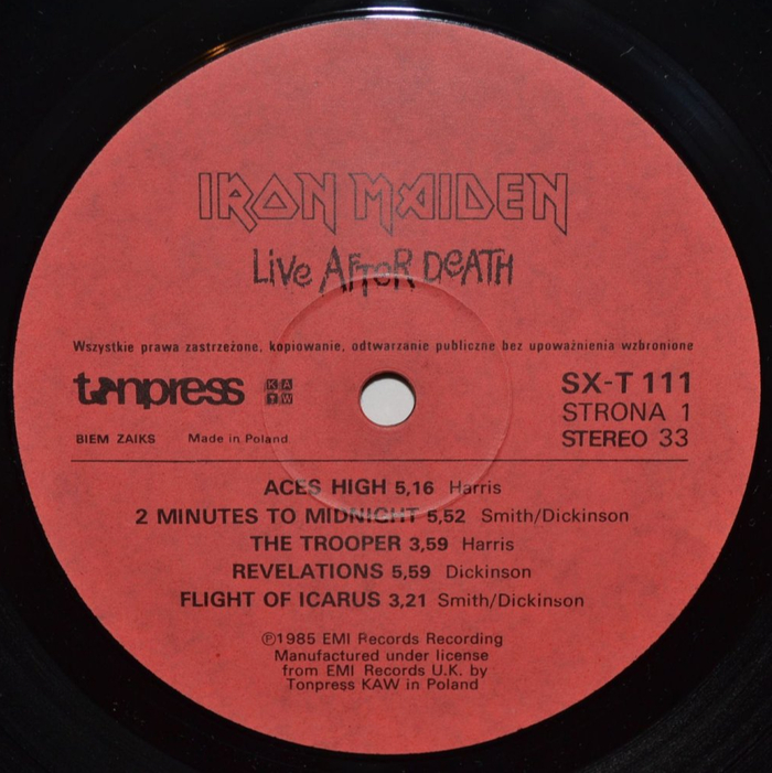В коллекцию осталось приобрести "Live After Death" (оказывается он печатался в СССР в 1988-м году на Апрелевском заводе для фирмы "Tonpress", само издание (полиграфию) печатали в Польше):