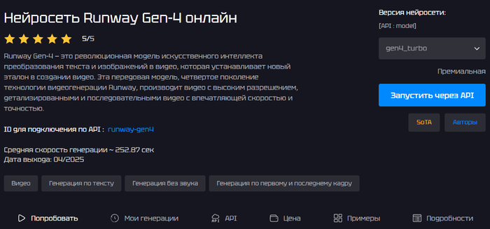 Runway — поколение Gen-4 от Runway, профессиональная видеомодель для продакшн-класса, позволяющая задавать персонажей, объекты и сцены и получать консистентное, монтажно-готовое видео.